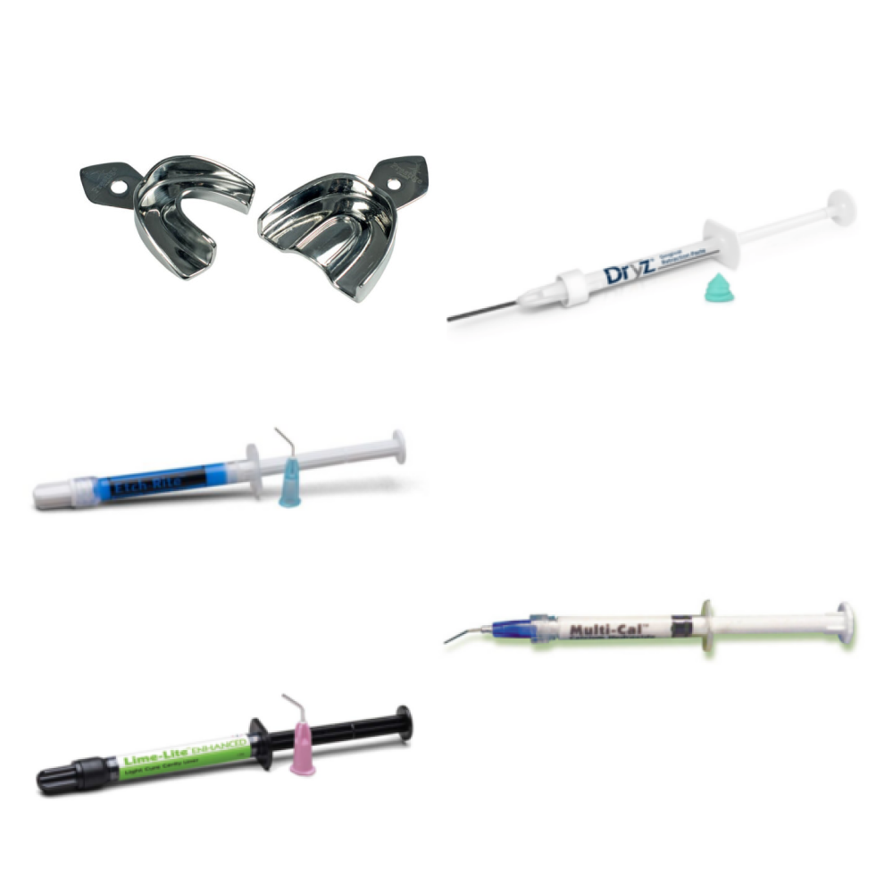 This FREE sample pack comprises of both equipment and product samples to help you on your dental journey. Available whilst stocks last and restricted to 1 per customer exact contents may vary, but will comprise of a Rimlock Tray Set, plus 2 of the 4 samples listed: